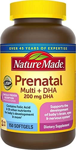About this item Nature Made Prenatal Multi + DHA Liquid Softgel combines the 18 essential nutrients of a prenatal multivitamin with 200 mg DHA into just one convenient easy to swallow softgel with no added color or artificial flavors. 200 mg of DHA may help support fetal brain and eye development. PLEASE NOTE EXPIRY : SEP/2019