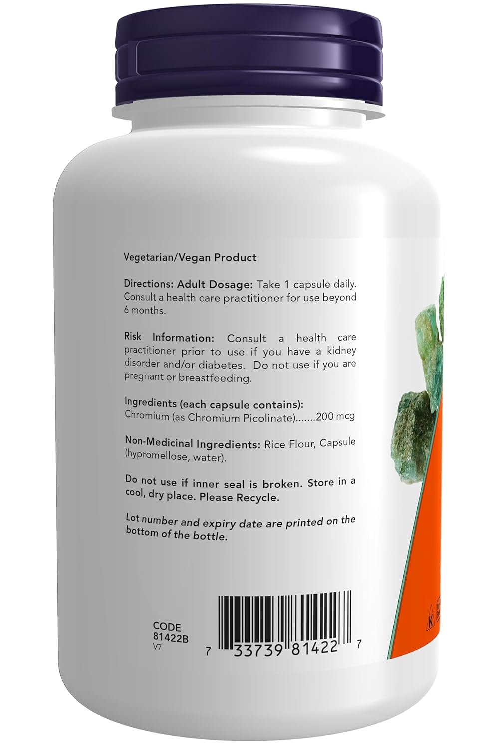 Maintain balanced energy and metabolism with NOW Foods Chromium Picolinate 200mcg. Chromium is an essential trace mineral that plays a key role in glucose metabolism, helping your body efficiently use carbohydrates, fats, and proteins for energy.