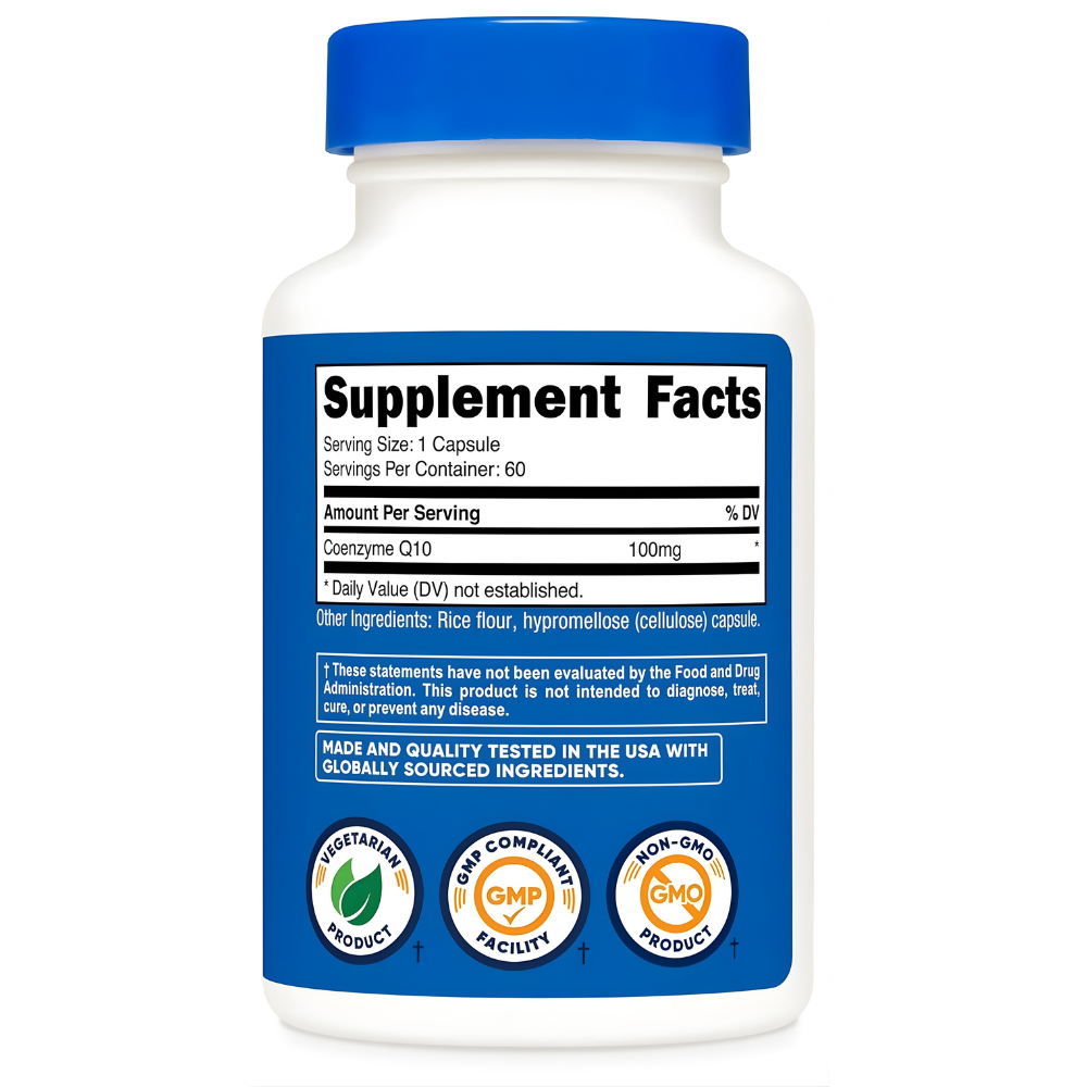 Nutricost CoQ10 60 serving 100 mg per serving 60 Capsules