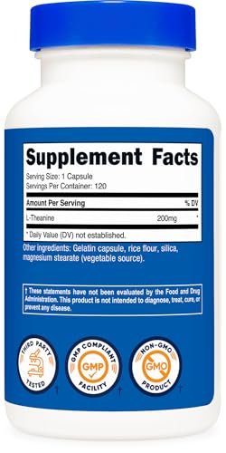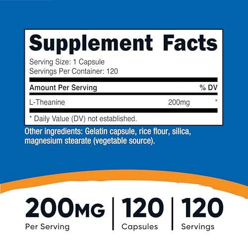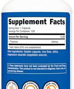 About this item 120 Capsules of 200mg L-Theanine Per Bottle Double Strength Easy To Take Capsules Non-GMO, Gluten Free FSSAI Importer Licence no: 23317003000774