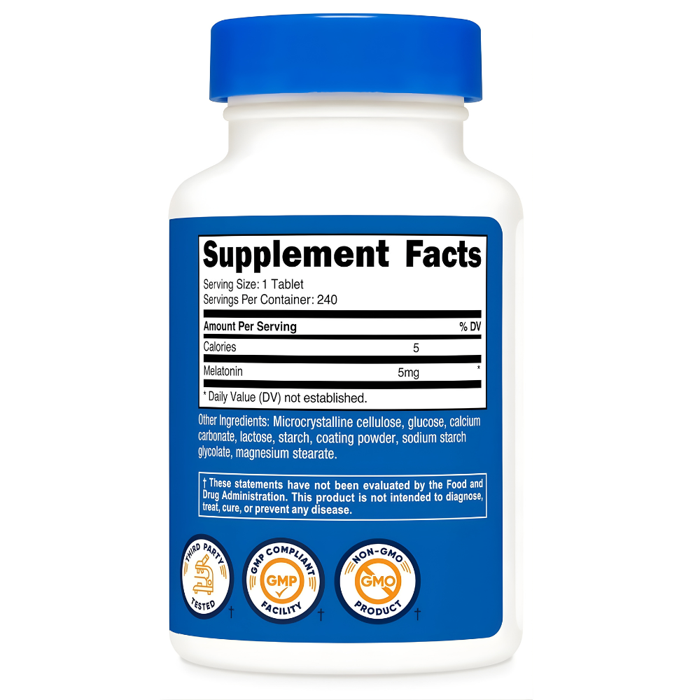 • Easy-To-Swallow Melatonin Tablets; 240 Tablets of Melatonin Per Bottle