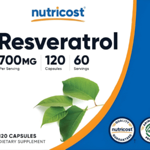 Promote longevity, heart health, and cellular protection with Nutricost Resveratrol 700mg, a high-potency antioxidant supplement inspired by the benefits of red wine — without the alcohol. Resveratrol is a natural polyphenol found in red grapes and certain berries, known to support cardiovascular wellness, healthy aging, and cellular defense against oxidative stress.