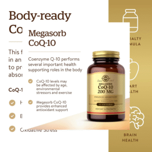 • Heart Health; CoQ-10 is a clinically-studied ingredient to promote heart function; CoQ-10 is a fat-soluble antioxidant; Antioxidants help fight cell-damaging free radicals in the body