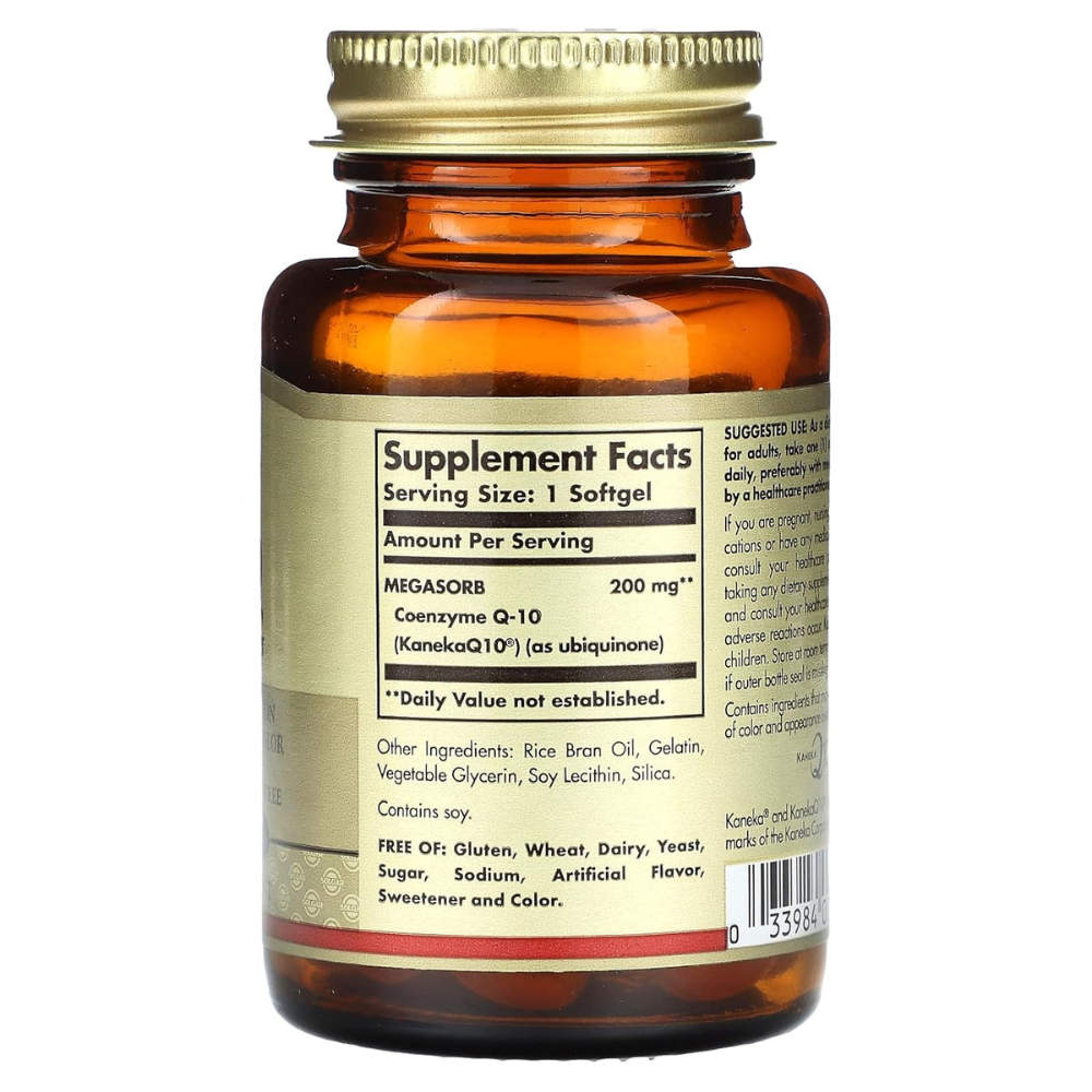 • Gluten, Wheat and Dairy Free; Solgar Megasorb CoQ-10 is free of: gluten, wheat, dairy, yeast, sugar, sodium, artificial flavor, sweetener, and preservatives